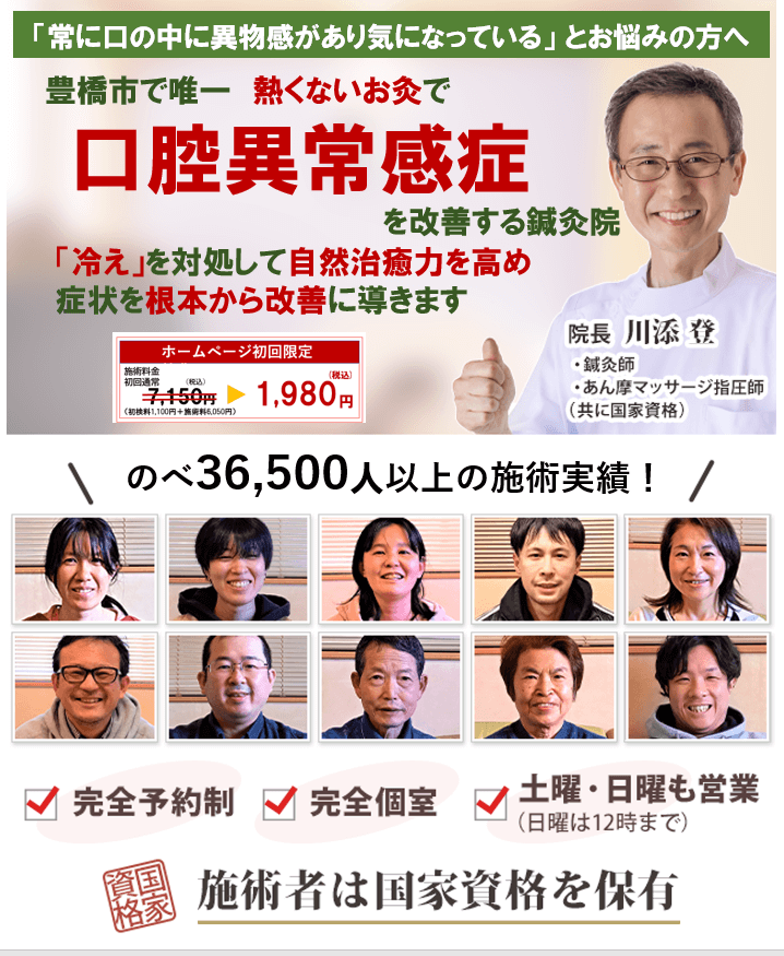 お灸を使った施術で「冷え」改善することで、病院や薬では良くならなかった「口腔異常感症」を根本から回復に導きます。